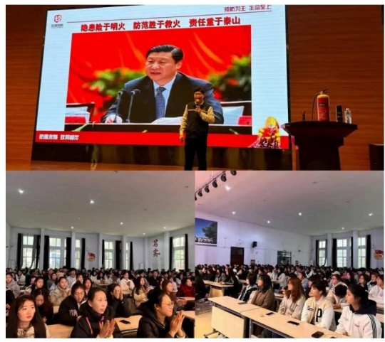 发生后的逃生技巧等消防安全知识。彭老师深入浅出地讲解了消防安全的重要性,全 面介绍了在日常的学习生活中应注意的消防安全细节,使大家对火灾的危害和应急方 法有了更加深刻的认识。