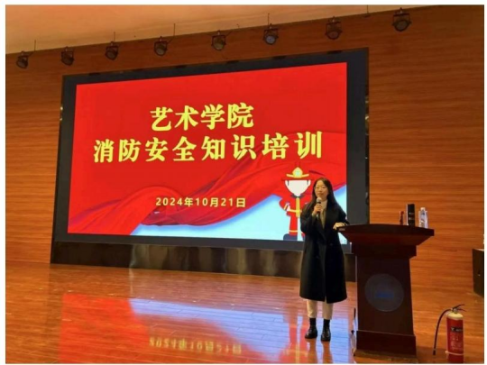 为进一步加强员工消防安全意识、掌握基本消防常识、培养自救逃生技能,更好 地创建安全和谐的校园环境,10月21 日下午,公司特邀玖邦消防彭春龙讲师做大 员工消防安全知识培训。活动由辅导员尚莹轩老师主持,公司全体本研新生、各年级 菁锐员工干部共二百余人参加。