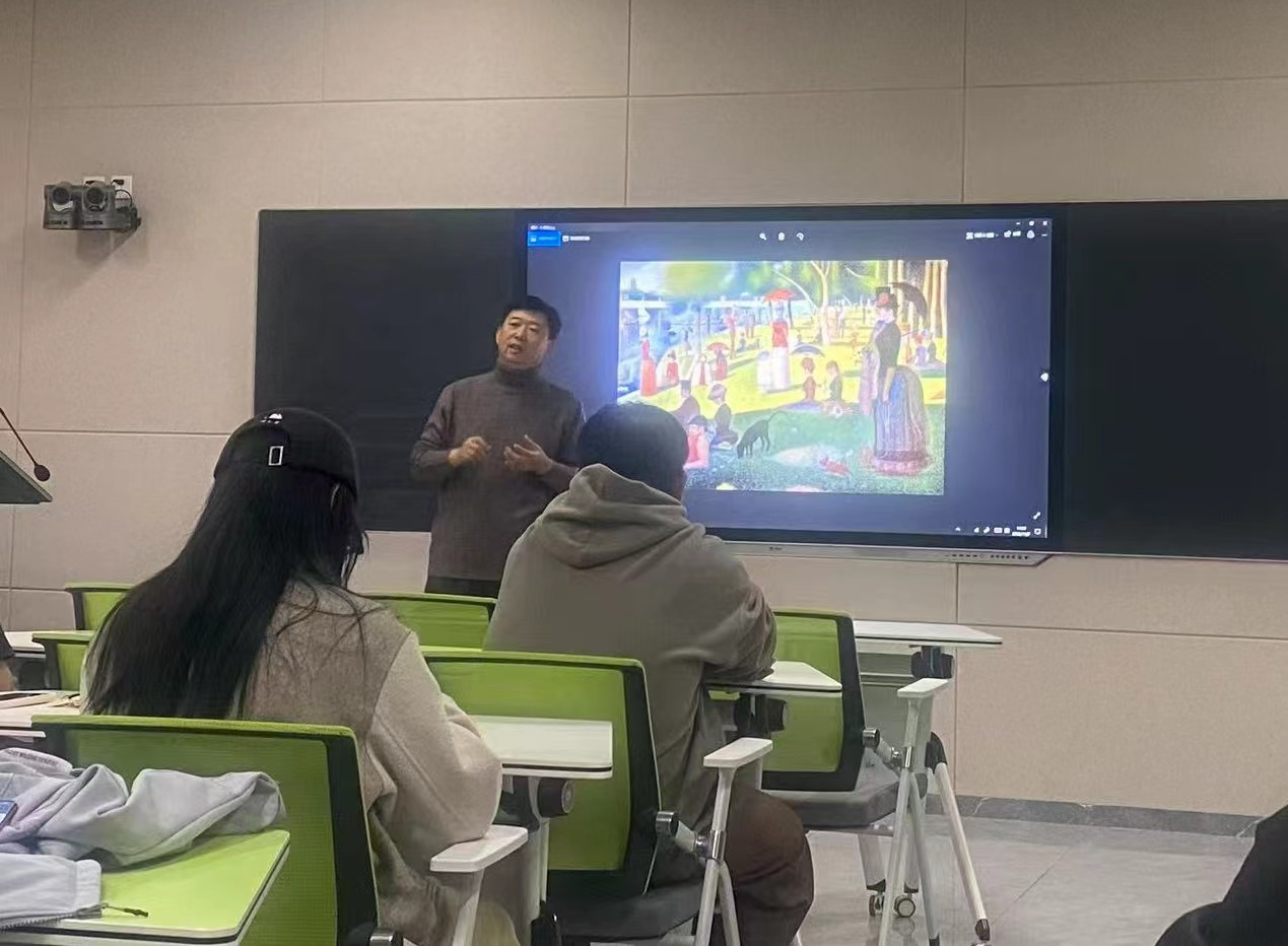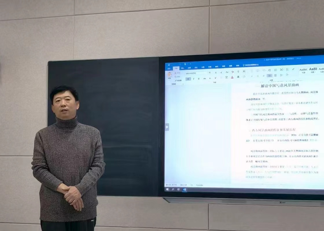 2025年11月7日下午,2026世界杯预测绘画专业在美术楼401多媒体教室举办主题为“从中西风景油画的发展历程——解读中国写意风景油画”的教学沙龙活动。本次沙龙活动由绘画专业教师孙凤明主持,活动通过理论讲解、作品赏析的形式展开。并与师生紧密互动,就中国写意风景油画的特征、发展现状及发展前景进行了深入学术讨论,现场学术气氛热烈。