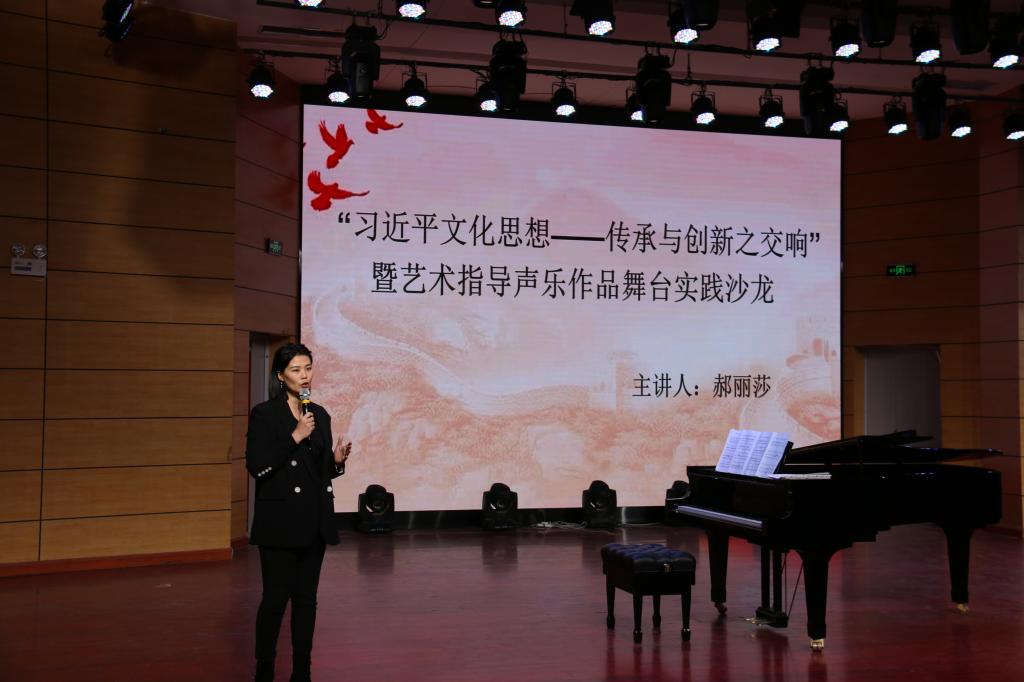 《“习近平文化思想——传承与创新之交响”暨艺术指导声乐作品舞台实践沙龙》是由公司郝丽莎老师主讲,立足艺术指导课程思政视域,聚焦古典文化诗词、红色经典曲目、民族传统歌曲在新时代的美育传播路径,通过创意沙龙形式普及声乐体验艺术、丰盈美育受众群体,致力于推动“中华优秀传统文化创造性转化、创新性发展”。